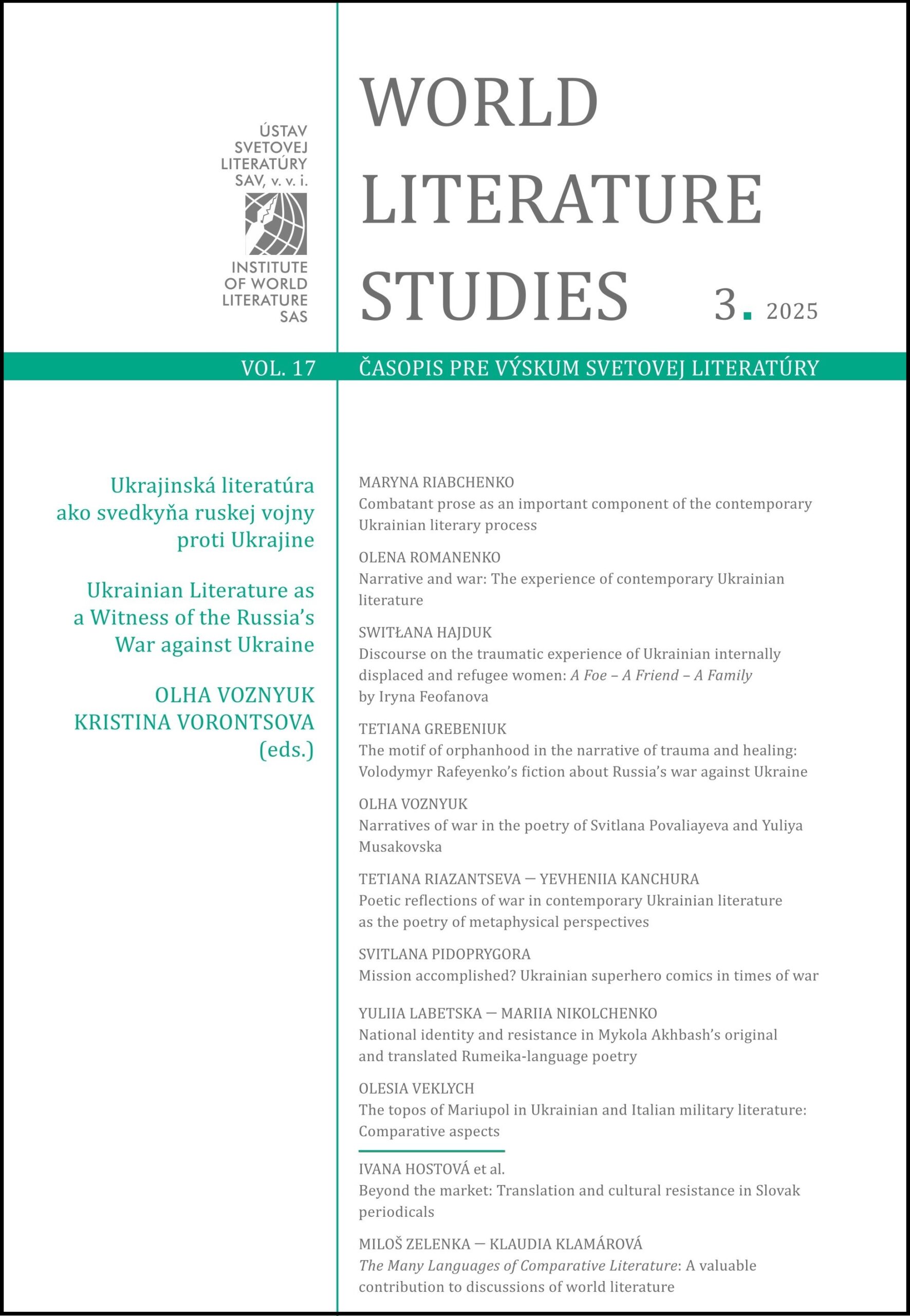 The motif of orphanhood in the narrative of trauma and healing: Volodymyr Rafeyenko’s fiction about Russia’s war against Ukraine Pokračovať na Nové číslo World Literature Studies 3/2025: Ukrajinská literatúra ako svedkyňa ruskej vojny proti Ukrajine
